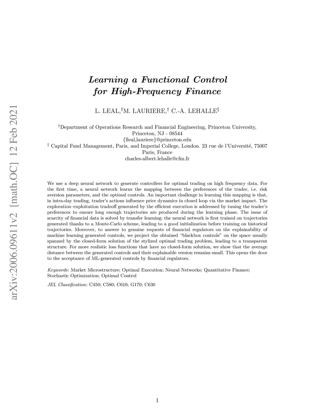 Learning a functional control for high-frequency finance
