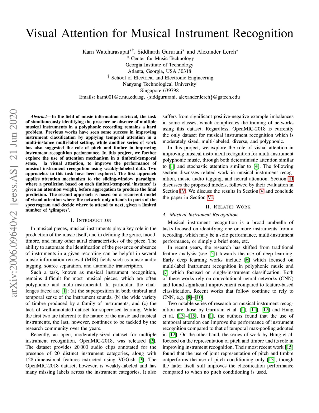 Visual Attention for Musical Instrument Recognition