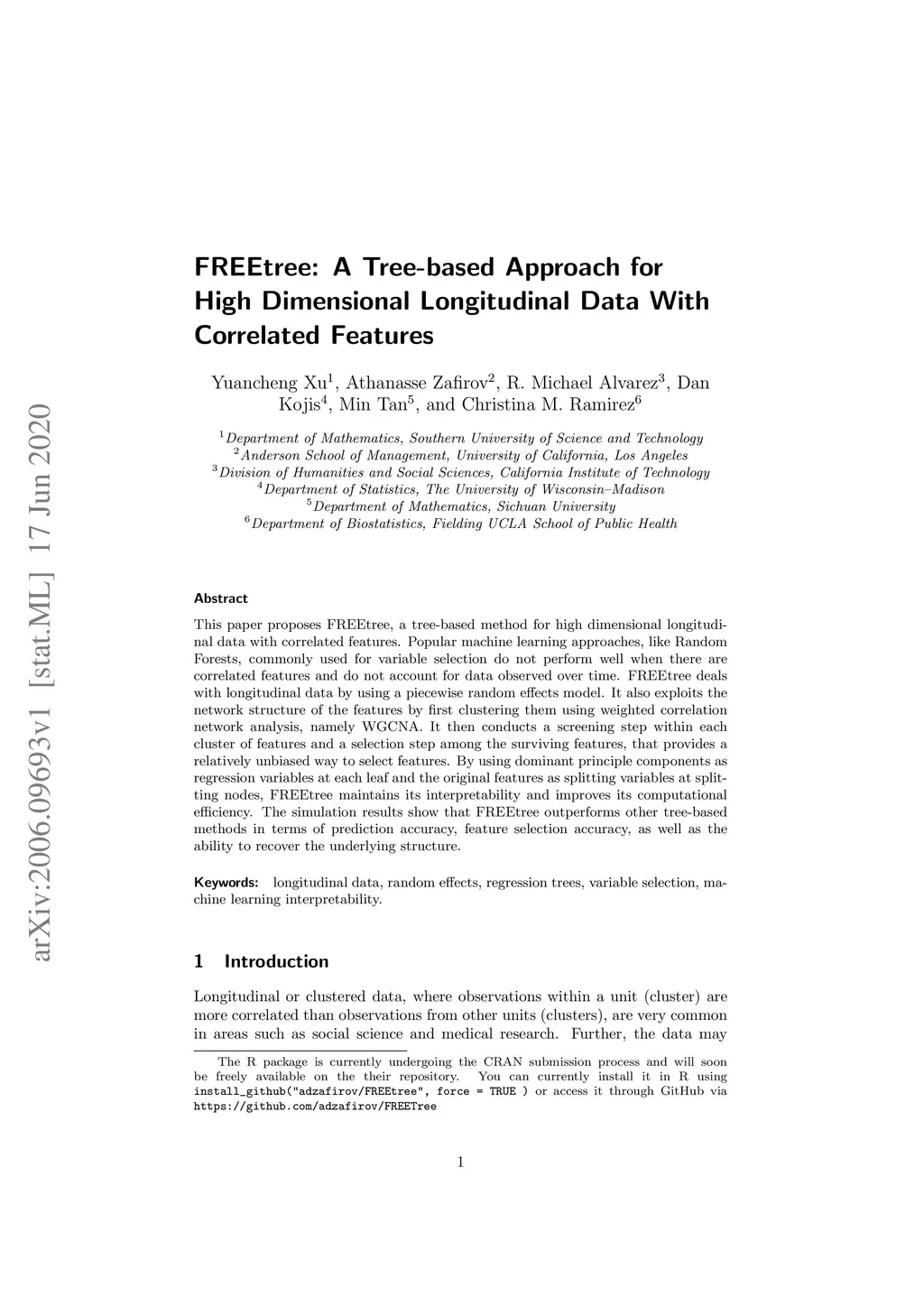 FREEtree: A Tree-based Approach for High Dimensional Longitudinal Data
