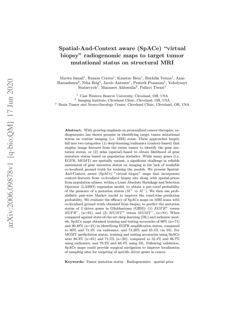 target tumor mutational status on structural MRI