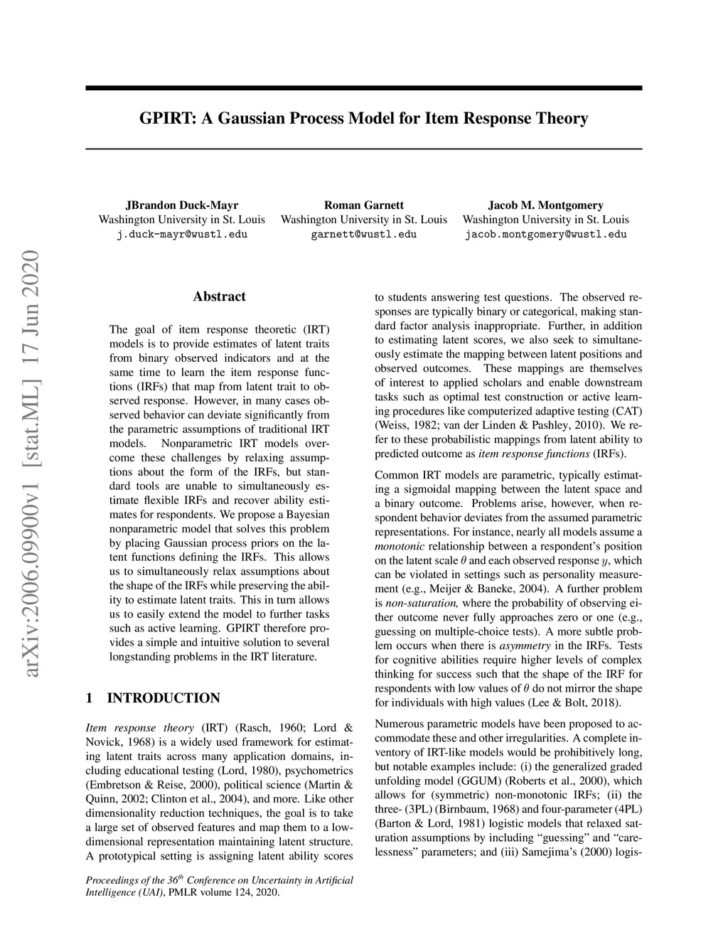 GPIRT: A Gaussian Process Model for Item Response Theory