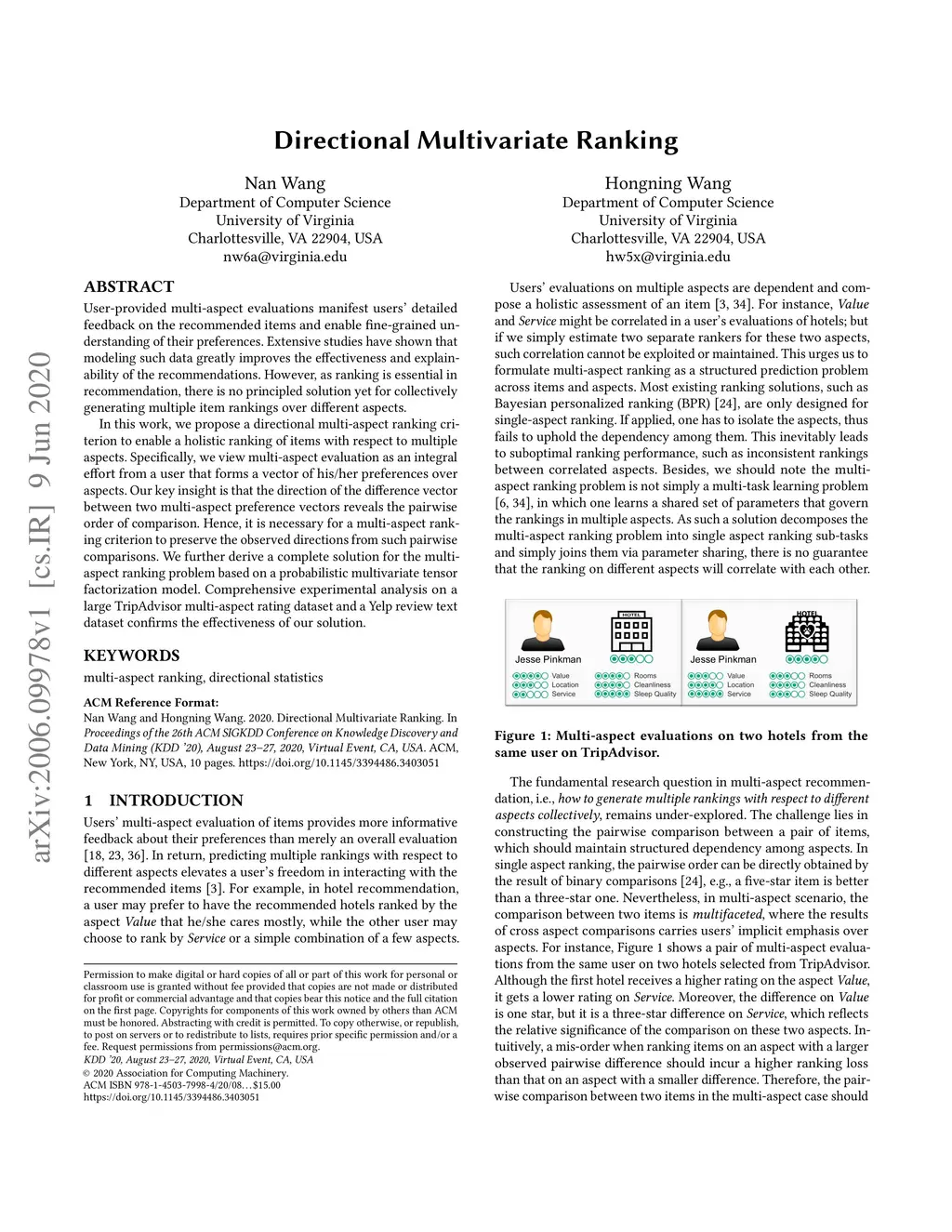 User-provided multi-aspect evaluations manifest users' detailed feedback on the recommended items and enable fine-grained understanding of their preferences. Extensive studies have shown that modeling such data greatly improves the effectiveness and explainability of the recommendations. However, as ranking is essential in recommendation, there is no principled solution yet for collectively generating multiple item rankings over different aspects. In this work, we propose a directional multi-aspect ranking criterion to enable a holistic ranking of items with respect to multiple aspects. Specifically, we view multi-aspect evaluation as an integral effort from a user that forms a vector of his/her preferences over aspects. Our key insight is that the direction of the difference vector between two multi-aspect preference vectors reveals the pairwise order of comparison. Hence, it is necessary for a multi-aspect ranking criterion to preserve the observed directions from such pairwise comparisons. We further derive a complete solution for the multi-aspect ranking problem based on a probabilistic multivariate tensor factorization model. Comprehensive experimental analysis on a large TripAdvisor multi-aspect rating dataset and a Yelp review text dataset confirms the effectiveness of our solution.