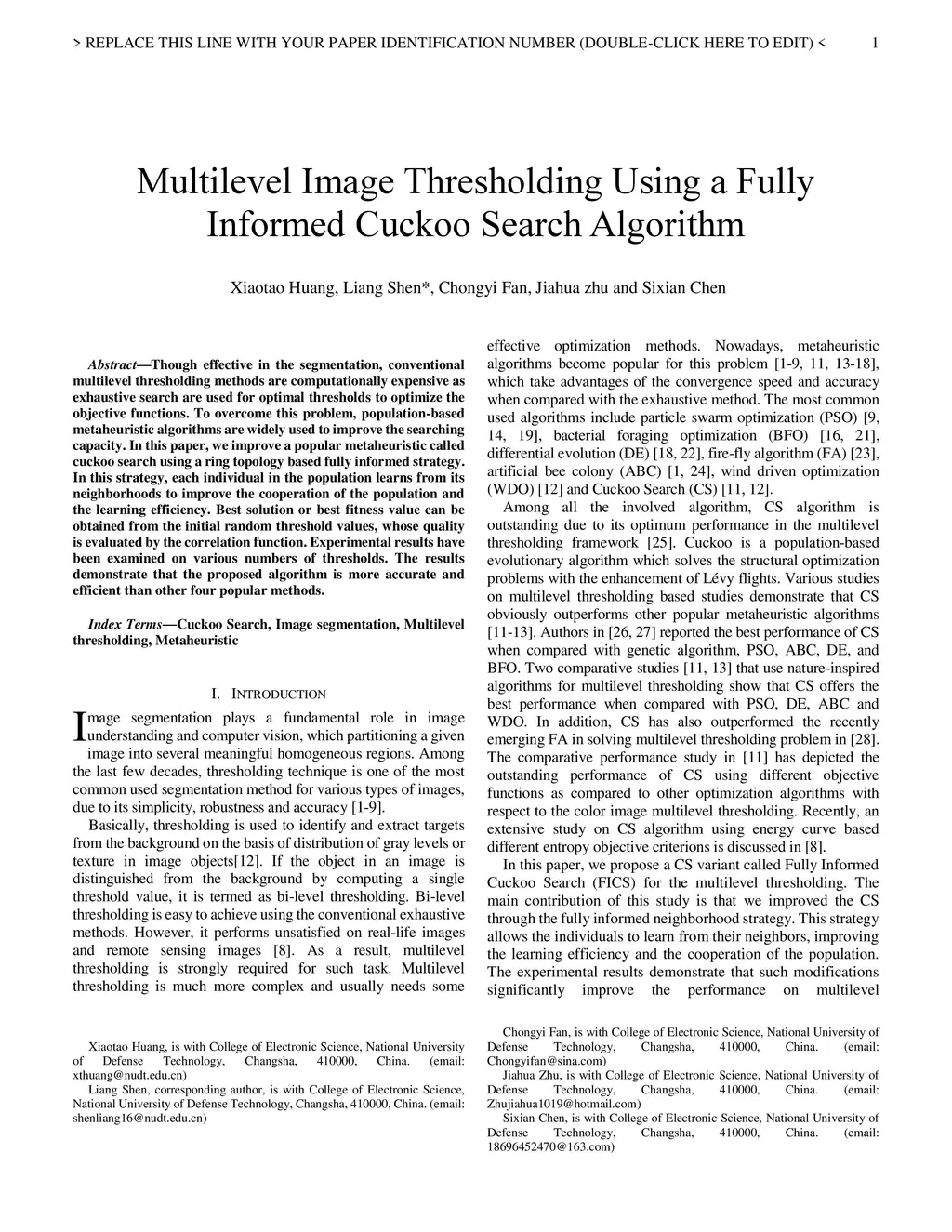Multilevel Image Thresholding Using a Fully Informed Cuckoo Search