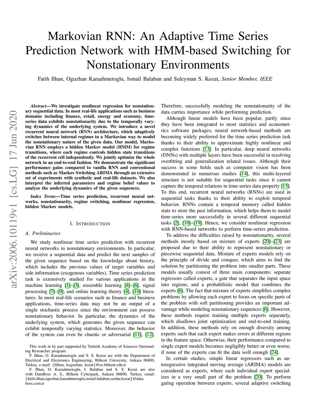 Markovian RNN: An Adaptive Time Series Prediction Network with HMM-based