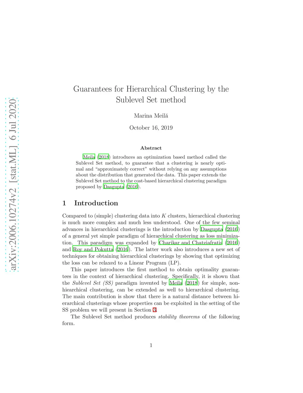 Guarantees for Hierarchical Clustering by the Sublevel Set method