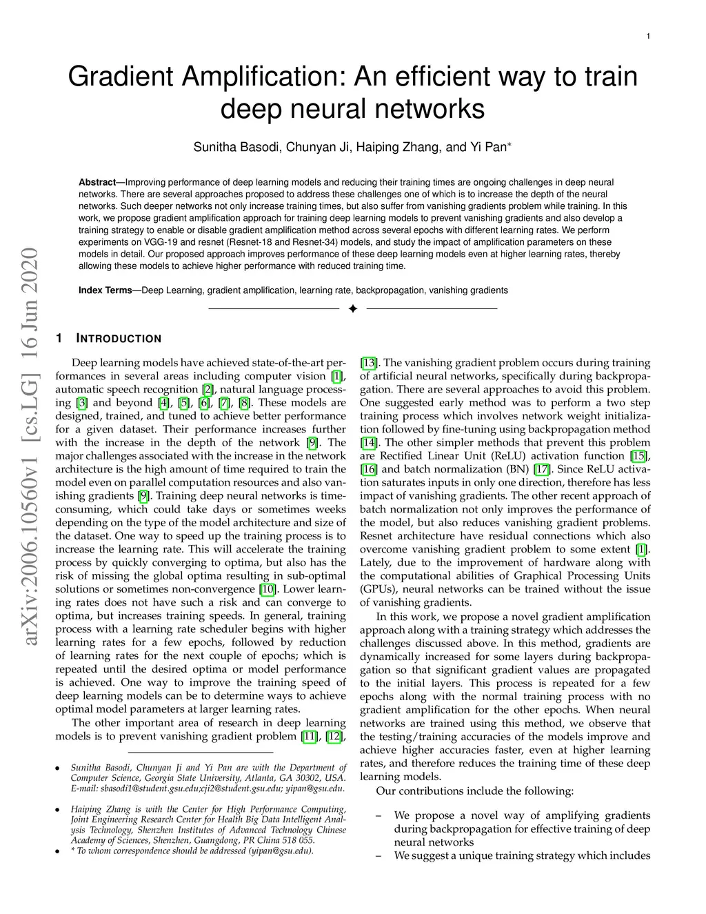 Gradient Amplification: An efficient way to train deep neural networks