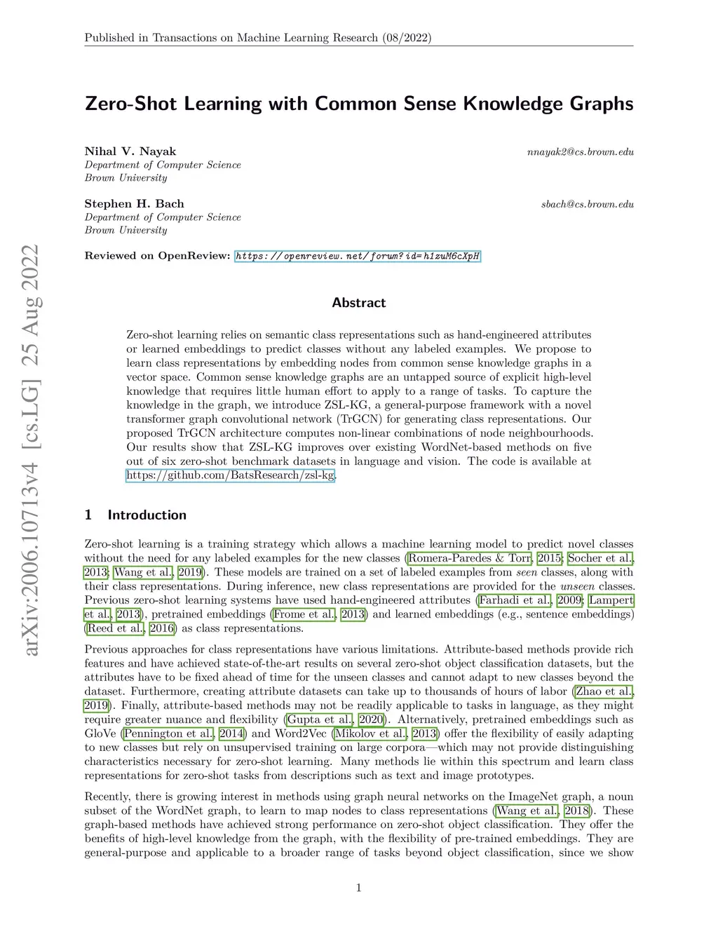 Zero-Shot Learning with Common Sense Knowledge Graphs