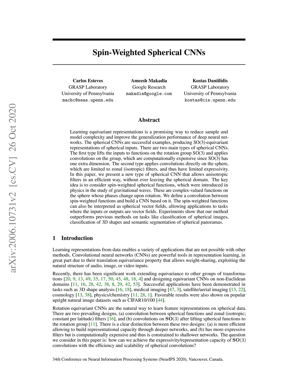 Spin-Weighted Spherical CNNs
