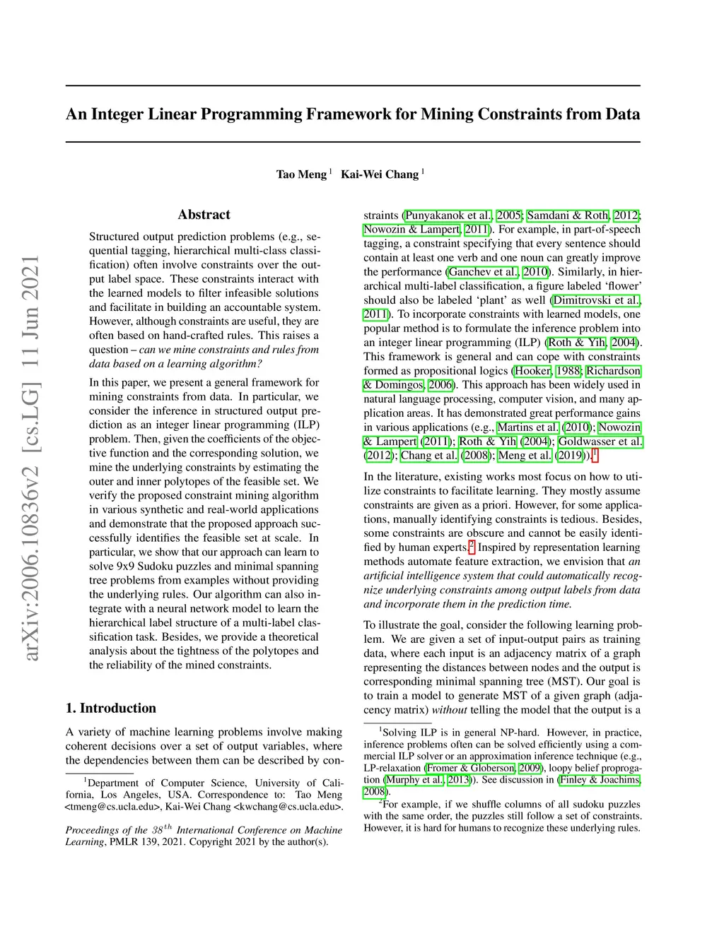 An Integer Linear Programming Framework for Mining Constraints from Data