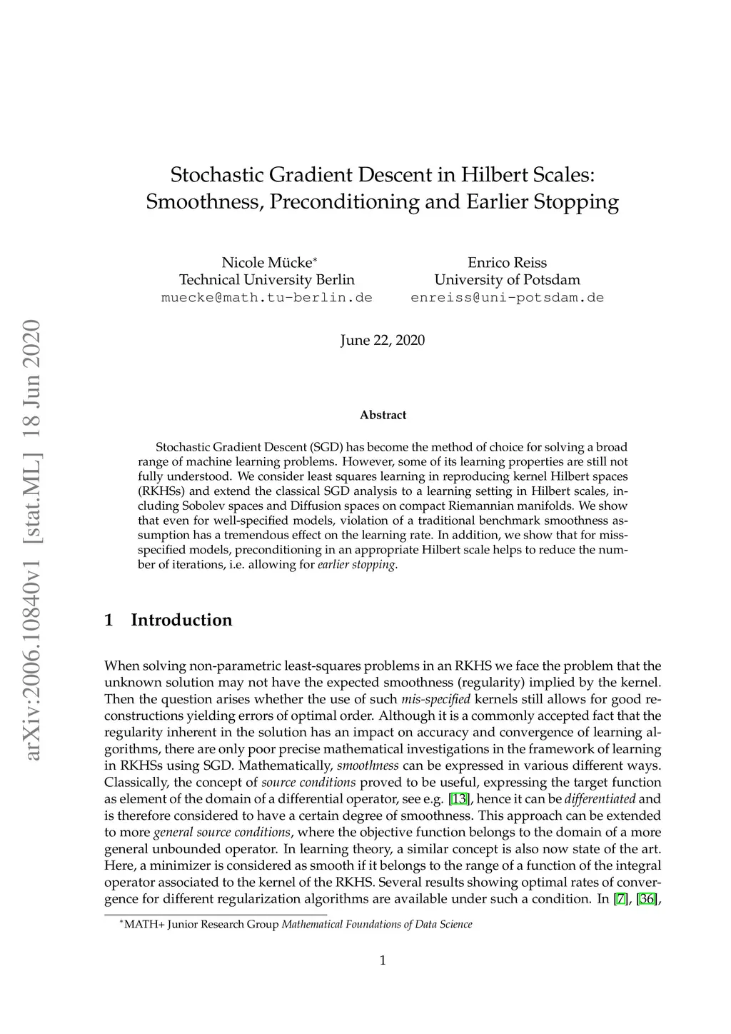 Stochastic Gradient Descent (SGD) has become the method of choice for solving a broad range of machine learning problems. However, some of its learning properties are still not fully understood. We consider least squares learning in reproducing kernel Hilbert spaces (RKHSs) and extend the classical SGD analysis to a learning setting in Hilbert scales, including Sobolev spaces and Diffusion spaces on compact Riemannian manifolds. We show that even for well-specified models, violation of a traditional benchmark smoothness assumption has a tremendous effect on the learning rate. In addition, we show that for miss-specified models, preconditioning in an appropriate Hilbert scale helps to reduce the number of iterations, i.e. allowing for "earlier stopping".