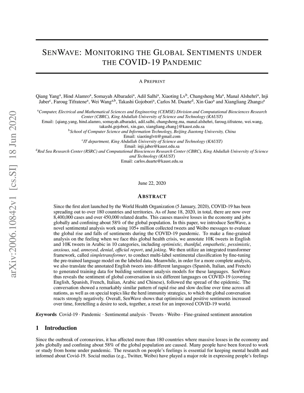 SenWave: Monitoring the Global Sentiments under the COVID-19 Pandemic