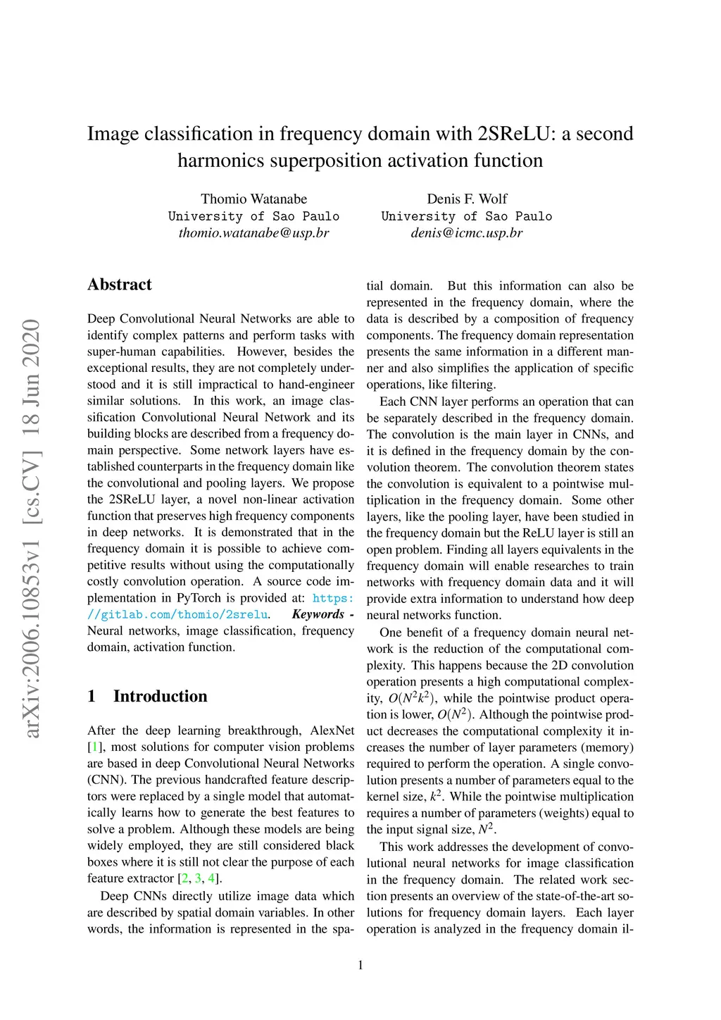 Image classification in frequency domain with 2SReLU: a second harmonics