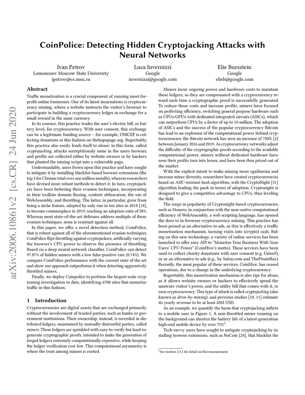 CoinPolice:Detecting Hidden Cryptojacking Attacks with Neural Networks