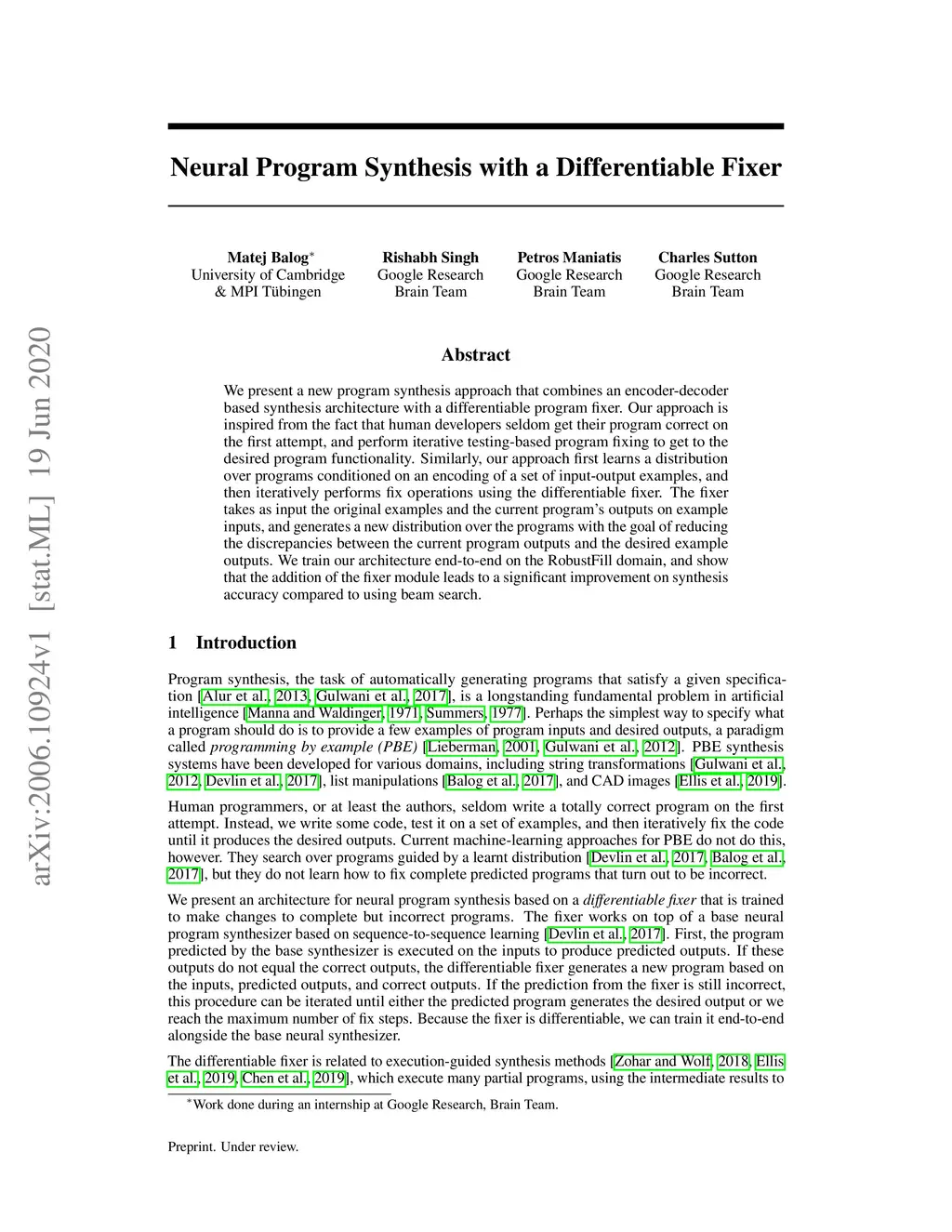 We present a new program synthesis approach that combines an encoder-decoder based synthesis architecture with a differentiable program fixer. Our approach is inspired from the fact that human developers seldom get their program correct on the first attempt, and perform iterative testing-based program fixing to get to the desired program functionality. Similarly, our approach first learns a distribution over programs conditioned on an encoding of a set of input-output examples, and then iteratively performs fix operations using the differentiable fixer. The fixer takes as input the original examples and the current program's outputs on example inputs, and generates a new distribution over the programs with the goal of reducing the discrepancies between the current program outputs and the desired example outputs. We train our architecture end-to-end on the RobustFill domain, and show that the addition of the fixer module leads to a significant improvement on synthesis accuracy compared to using beam search.