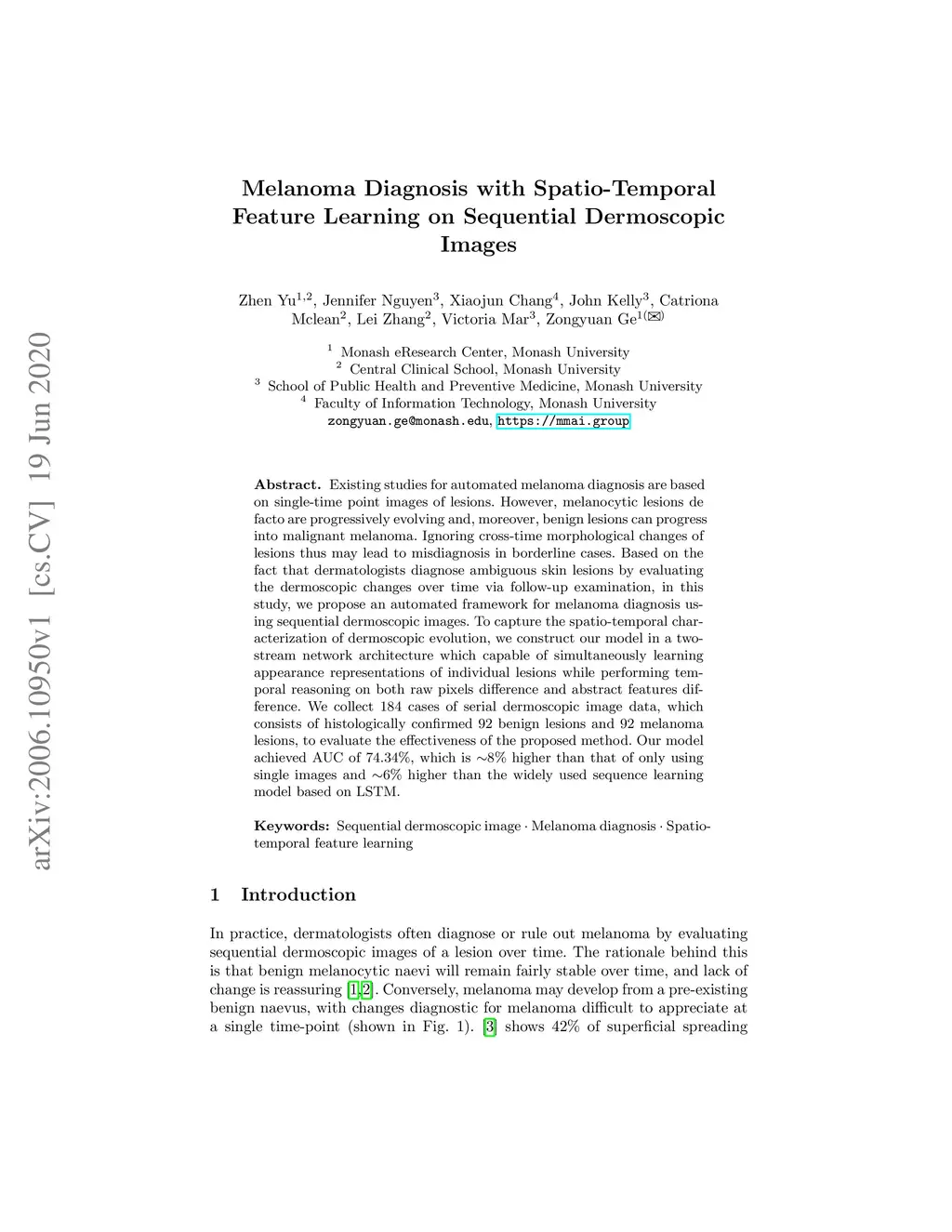 Melanoma Diagnosis with Spatio-Temporal Feature Learning on Sequential