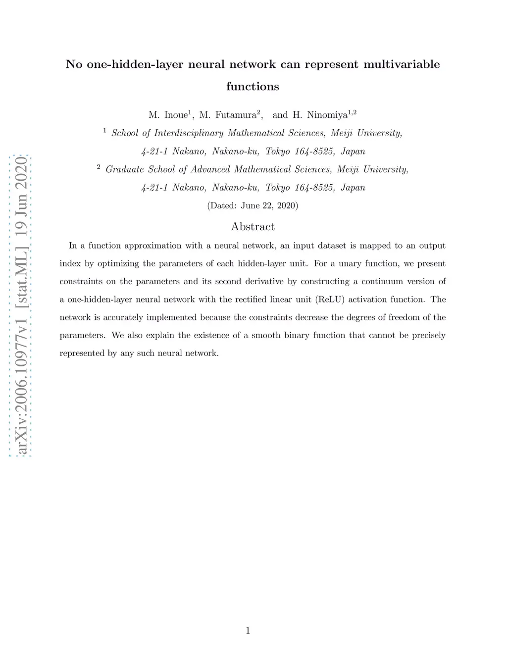 No one-hidden-layer neural network can represent multivariable functions