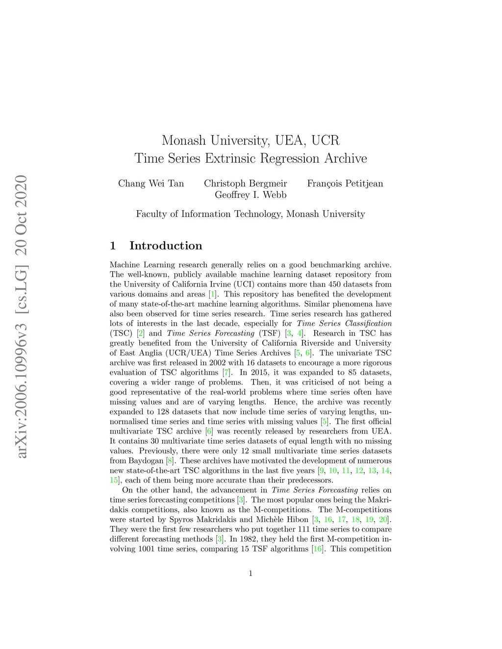 Monash University, UEA, UCR Time Series Extrinsic Regression Archive