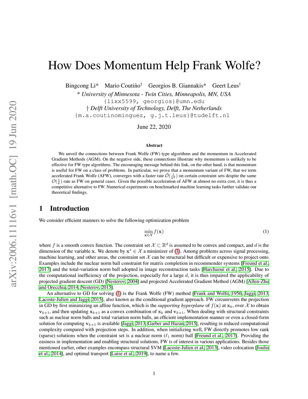 We unveil the connections between Frank Wolfe (FW) type algorithms and the momentum in Accelerated Gradient Methods (AGM). On the negative side, these connections illustrate why momentum is unlikely to be effective for FW type algorithms. The encouraging message behind this link, on the other hand, is that momentum is useful for FW on a class of problems. In particular, we prove that a momentum variant of FW, that we term accelerated Frank Wolfe (AFW), converges with a faster rate on certain constraint sets despite the same rate as FW on general cases. Given the possible acceleration of AFW at almost no extra cost, it is thus a competitive alternative to FW. Numerical experiments on benchmarked machine learning tasks further validate our theoretical findings.