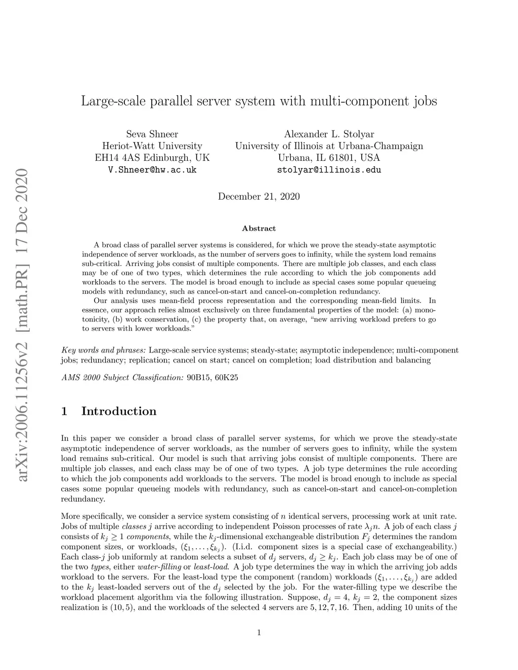 A broad class of parallel server systems is considered, for which we prove the steady-state asymptotic independence of server workloads, as the number of servers goes to infinity, while the system load remains sub-critical. Arriving jobs consist of multiple components. There are multiple job classes, and each class may be of one of two types, which determines the rule according to which the job components add workloads to the servers. The model is broad enough to include as special cases some popular queueing models with redundancy, such as cancel-on-start and cancel-on-completion redundancy. Our analysis uses mean-field process representation and the corresponding mean-field limits. In essence, our approach relies almost exclusively on three fundamental properties of the model: (a) monotonicity, (b) work conservation, (c) the property that, on average, "new arriving workload prefers to go to servers with lower workloads."