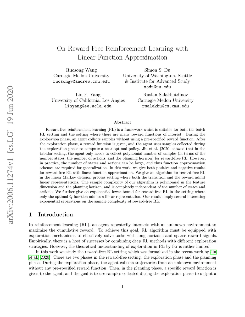 On Reward-Free Reinforcement Learning with Linear Function Approximation