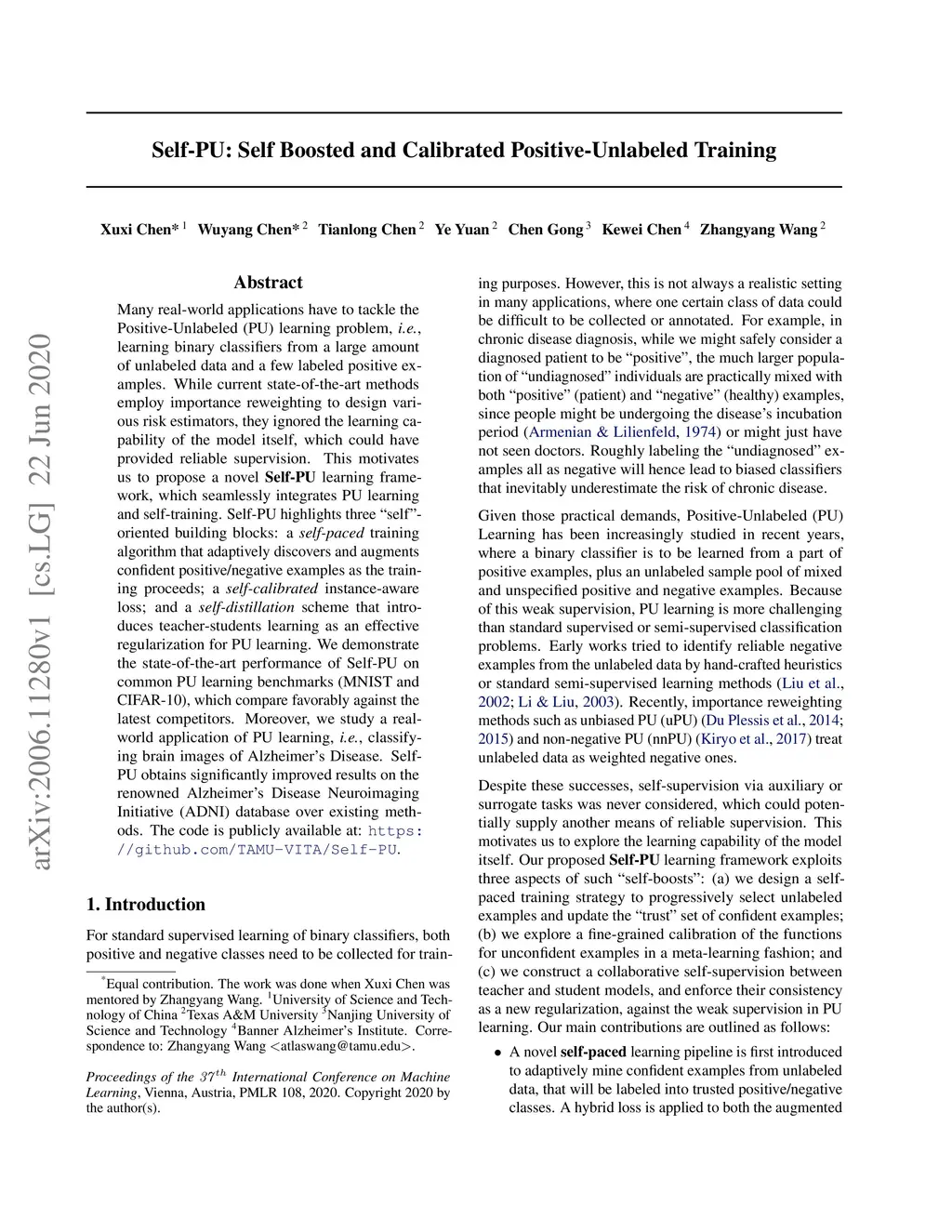 Self-PU: Self Boosted and Calibrated Positive-Unlabeled Training