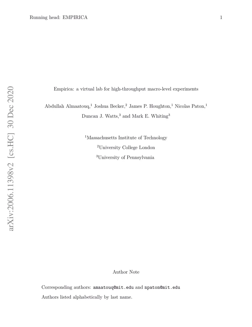 Empirica: a virtual lab for high-throughput macro-level experiments