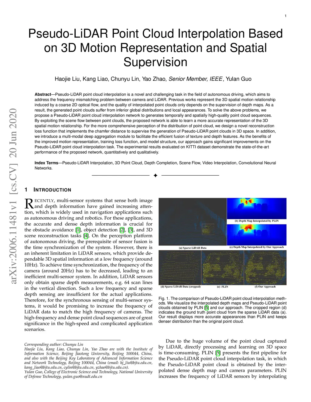 Pseudo-LiDAR Point Cloud Interpolation Based on 3D Motion Representation