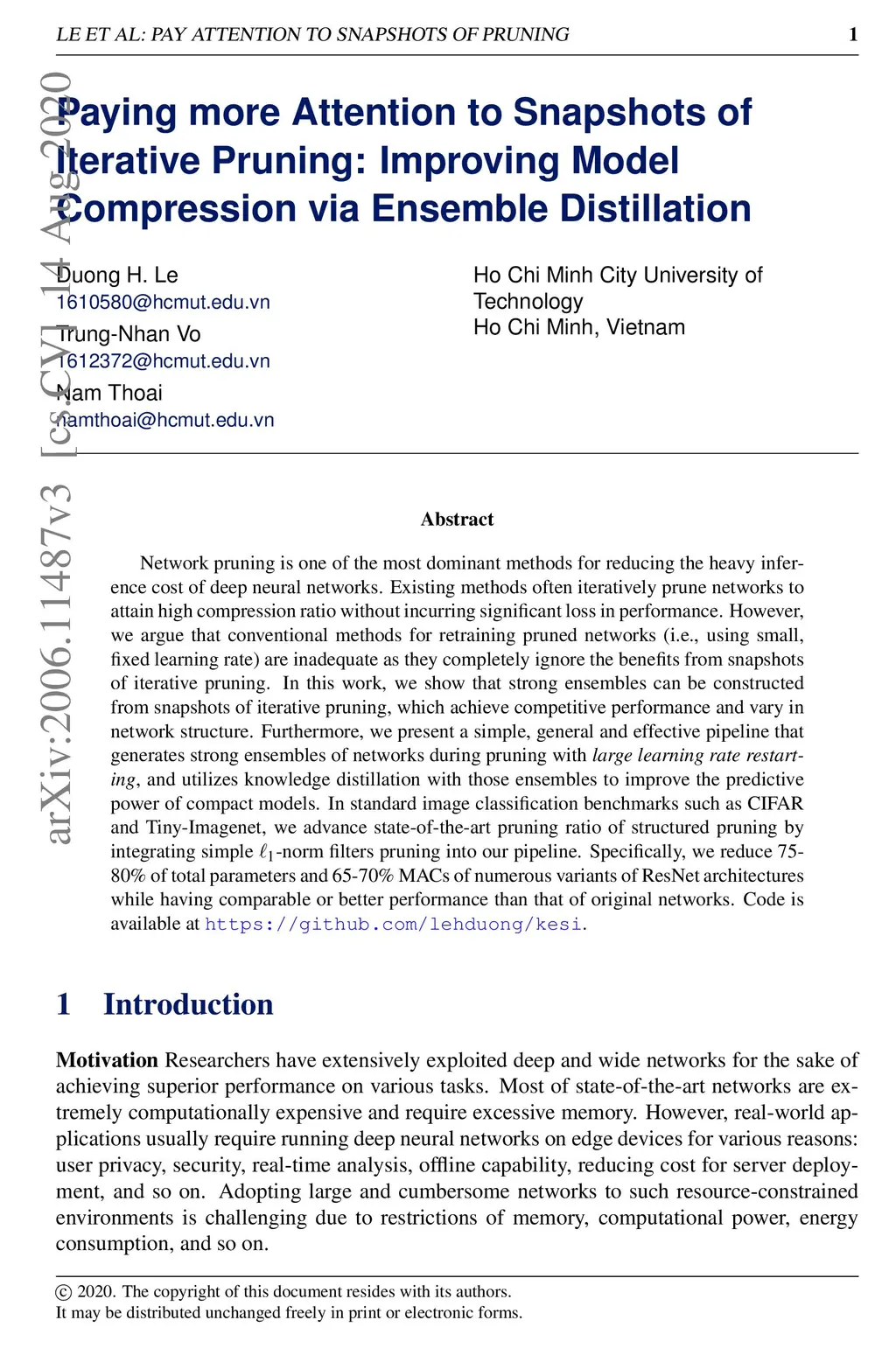Network pruning is one of the most dominant methods for reducing the heavy inference cost of deep neural networks. Existing methods often iteratively prune networks to attain high compression ratio without incurring significant loss in performance. However, we argue that conventional methods for retraining pruned networks (i.e., using small, fixed learning rate) are inadequate as they completely ignore the benefits from snapshots of iterative pruning. In this work, we show that strong ensembles can be constructed from snapshots of iterative pruning, which achieve competitive performance and vary in network structure. Furthermore, we present simple, general and effective pipeline that generates strong ensembles of networks during pruning with large learning rate restarting, and utilizes knowledge distillation with those ensembles to improve the predictive power of compact models. In standard image classification benchmarks such as CIFAR and Tiny-Imagenet, we advance state-of-the-art pruning ratio of structured pruning by integrating simple l1-norm filters pruning into our pipeline. Specifically, we reduce 75-80% of total parameters and 65-70% MACs of numerous variants of ResNet architectures while having comparable or better performance than that of original networks. Code associate with this paper is made publicly available at https://github.com/lehduong/kesi.