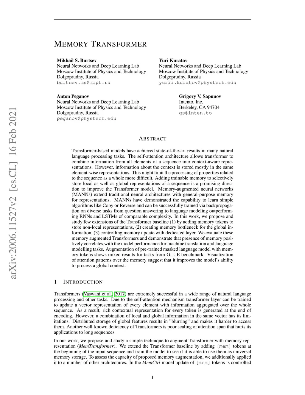 Memory Transformer