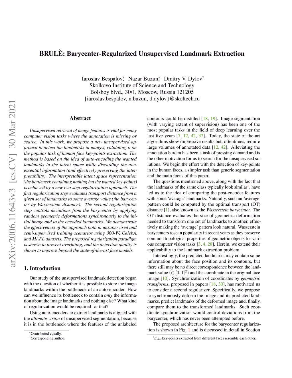 BRULÈ: Barycenter-Regularized Unsupervised Landmark Extraction