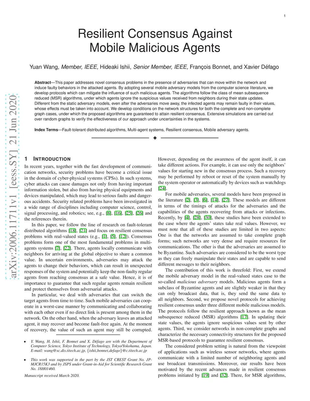 This paper addresses novel consensus problems in the presence of adversaries that can move within the network and induce faulty behaviors in the attacked agents. By adopting several mobile adversary models from the computer science literature, we develop protocols which can mitigate the influence of such malicious agents. The algorithms follow the class of mean subsequence reduced (MSR) algorithms, under which agents ignore the suspicious values received from neighbors during their state updates. Different from the static adversary models, even after the adversaries move away, the infected agents may remain faulty in their values, whose effects must be taken into account. We develop conditions on the network structures for both the complete and non-complete graph cases, under which the proposed algorithms are guaranteed to attain resilient consensus. Extensive simulations are carried out over random graphs to verify the effectiveness of our approach under uncertainties in the systems.