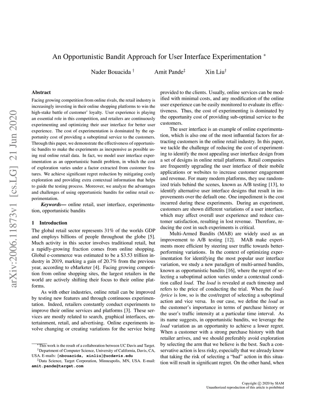An Opportunistic Bandit Approach for User Interface Experimentation