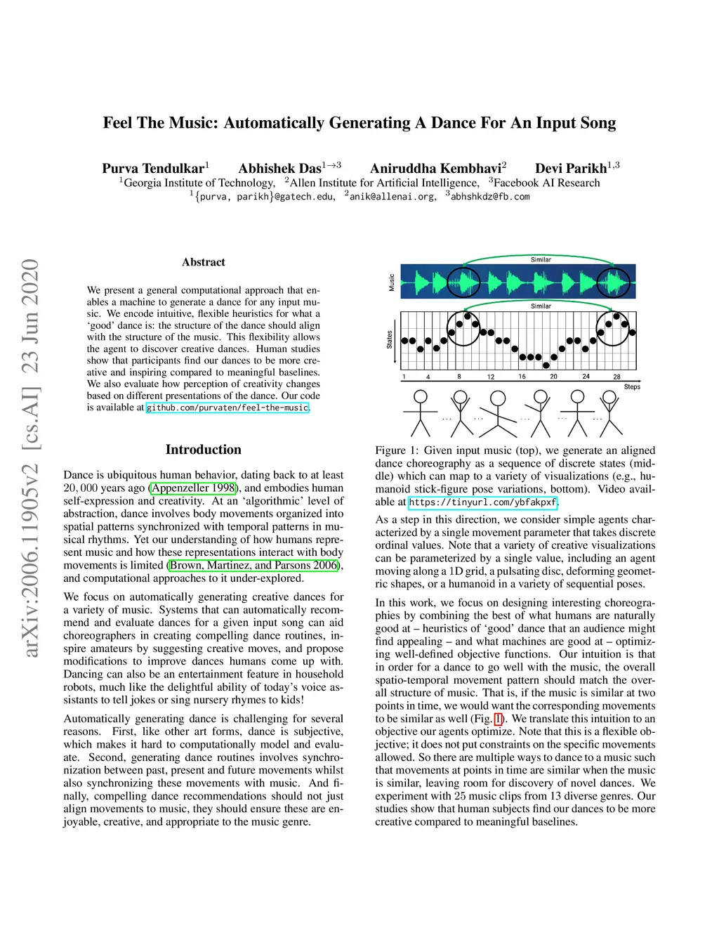 Feel The Music: Automatically Generating A Dance For An Input Song