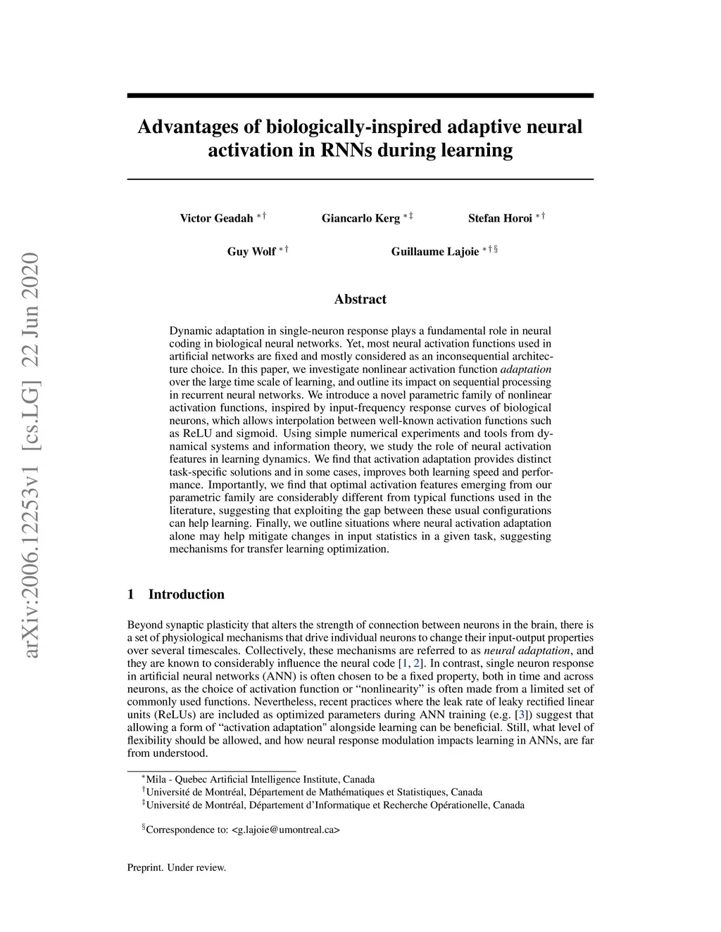 Advantages of biologically-inspired adaptive neural activation in RNNs