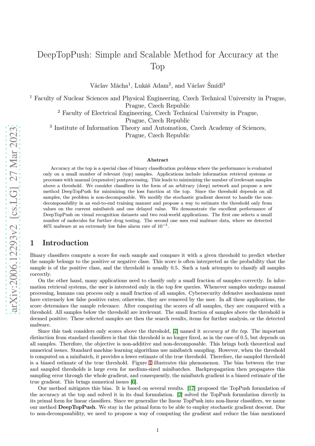 DeepTopPush: Simple and Scalable Method for Accuracy at the Top