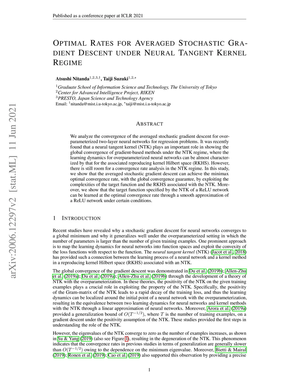 Optimal Rates for Averaged Stochastic Gradient Descent under Neural