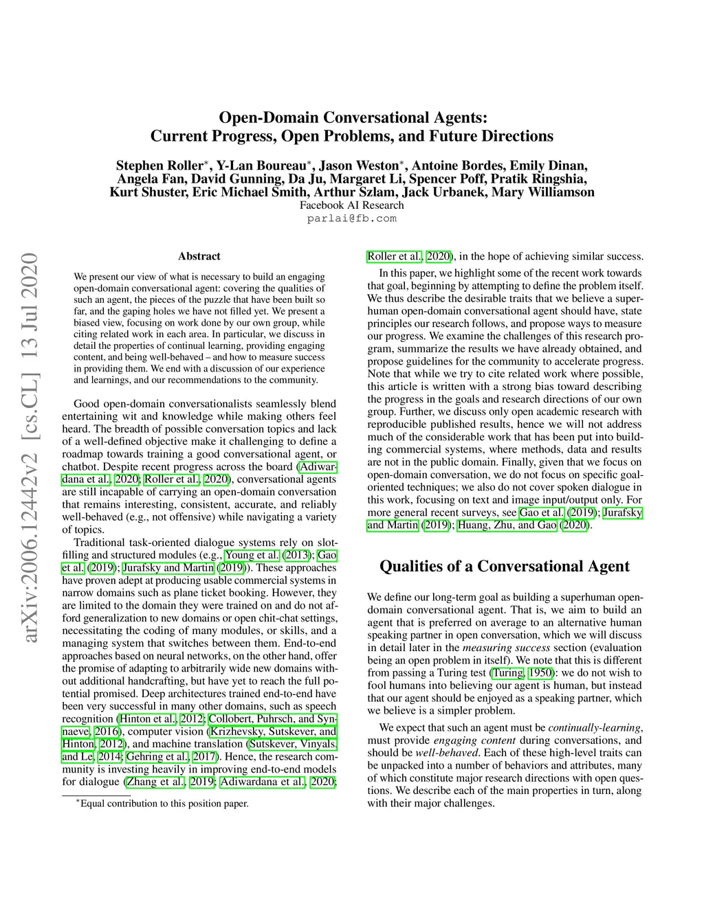 Open-Domain Conversational Agents: Current Progress, Open Problems, and