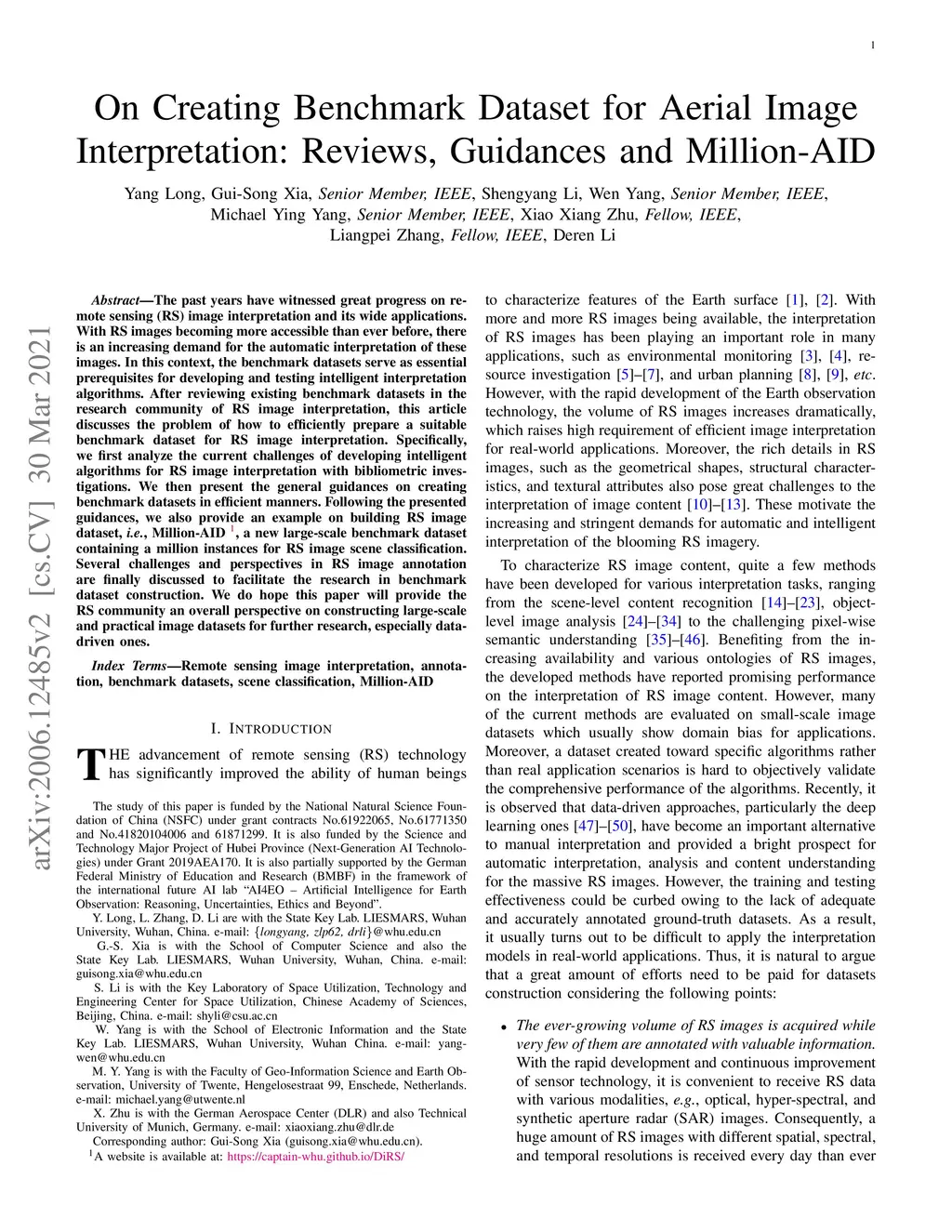 On Creating Benchmark Dataset for Aerial Image Interpretation: Reviews,