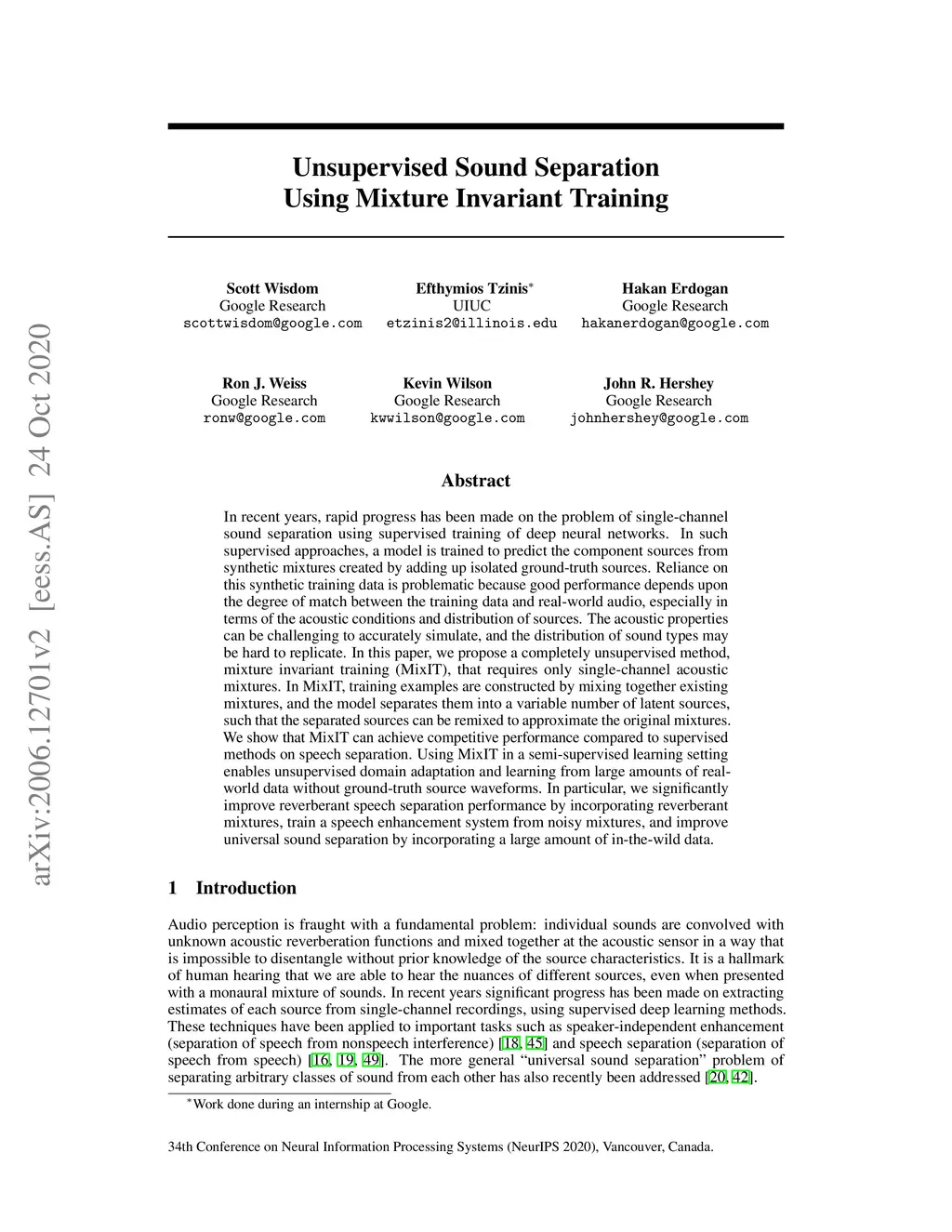 Unsupervised Sound Separation Using Mixture Invariant Training