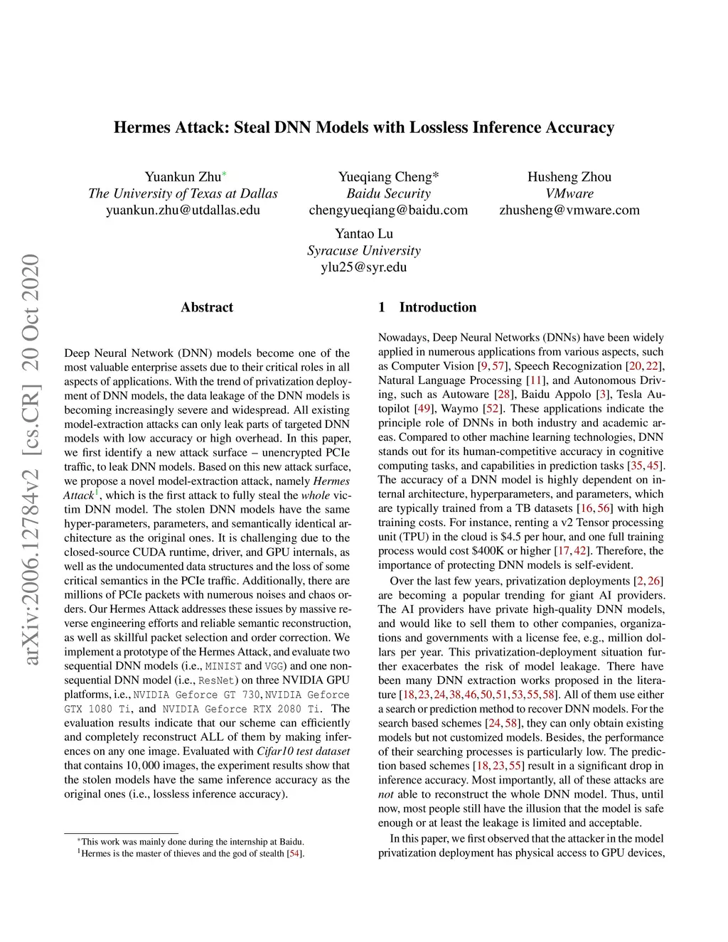 Hermes Attack: Steal DNN Models with Lossless Inference Accuracy