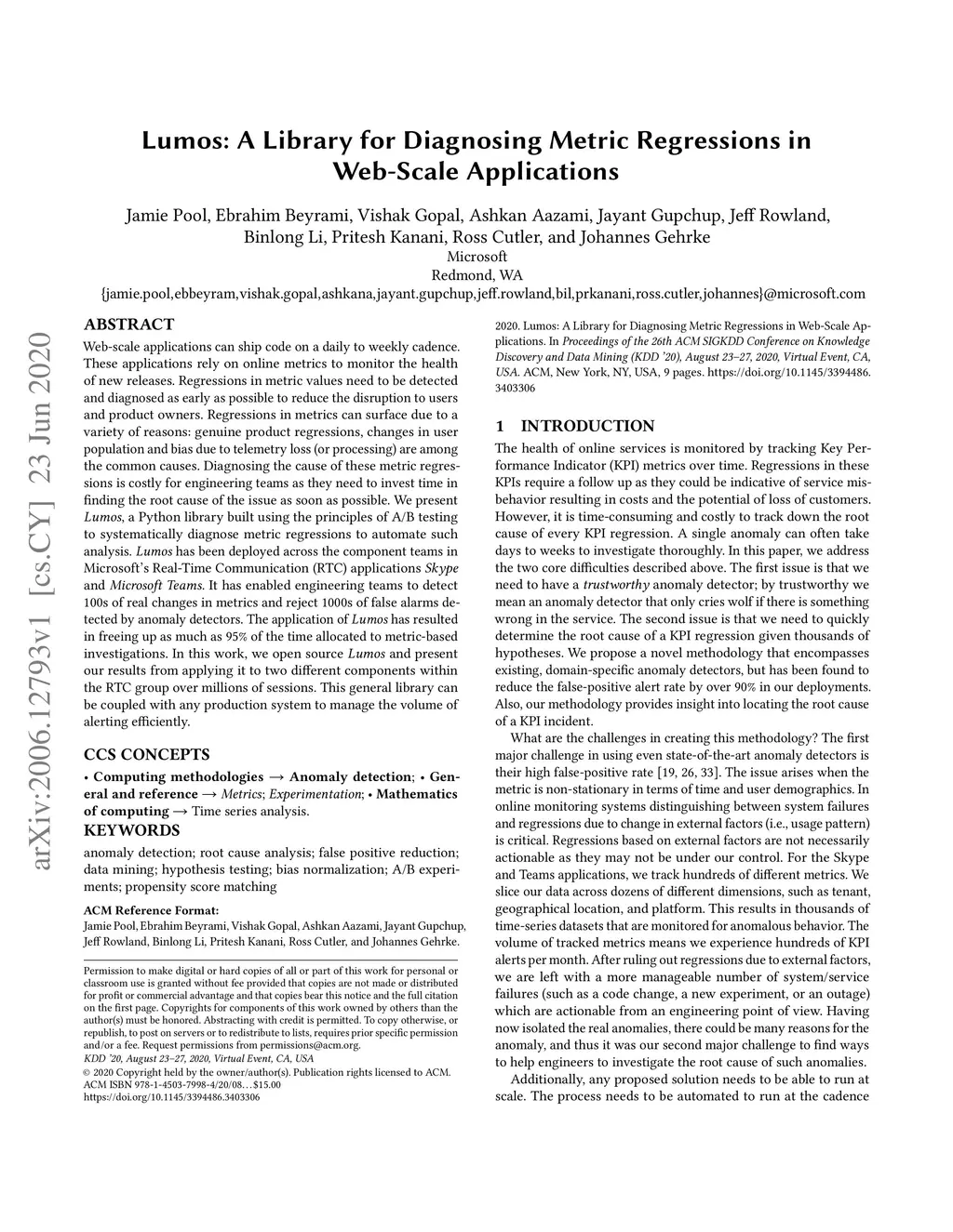 Lumos: A Library for Diagnosing Metric Regressions in Web-Scale