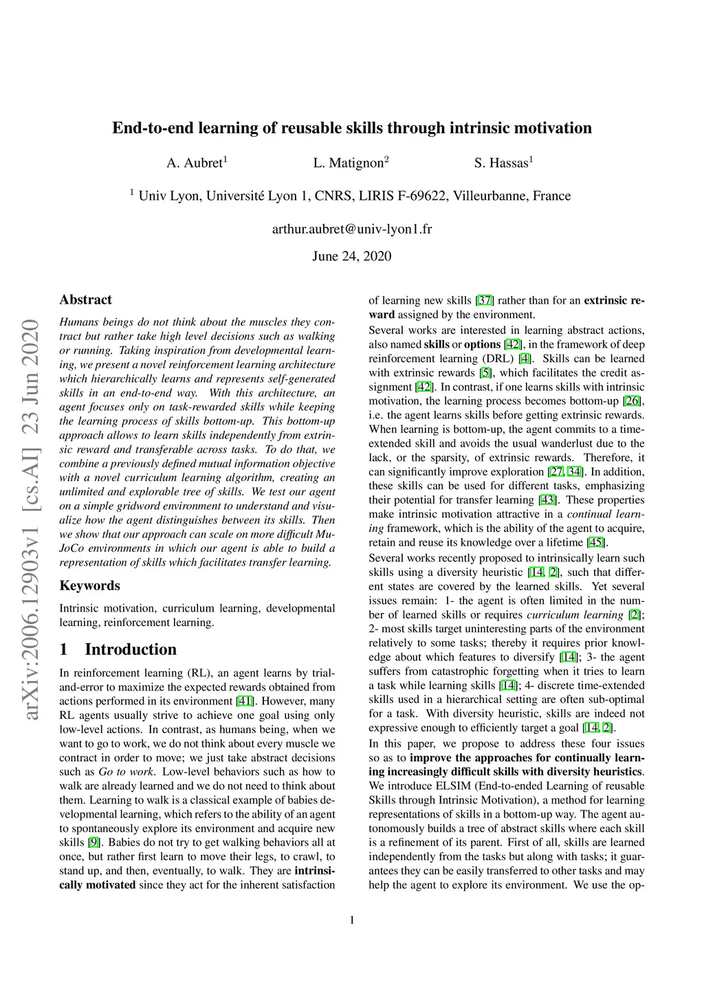 ELSIM: End-to-end learning of reusable skills through intrinsic