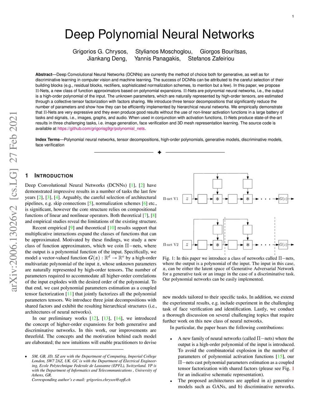 Deep Convolutional Neural Networks (DCNNs) are currently the method of choice both for generative, as well as for discriminative learning in computer vision and machine learning. The success of DCNNs can be attributed to the careful selection of their building blocks (e.g., residual blocks, rectifiers, sophisticated normalization schemes, to mention but a few). In this paper, we propose -Nets, a new class of function approximators based on polynomial expansions. -Nets are polynomial neural networks, i.e., the output is a high-order polynomial of the input. The unknown parameters, which are naturally represented by high-order tensors, are estimated through a collective tensor factorization with factors sharing. We introduce three tensor decompositions that significantly reduce the number of parameters and show how they can be efficiently implemented by hierarchical neural networks. We empirically demonstrate that -Nets are very expressive and they even produce good results without the use of non-linear activation functions in a large battery of tasks and signals, i.e., images, graphs, and audio. When used in conjunction with activation functions, -Nets produce state-of-the-art results in three challenging tasks, i.e. image generation, face verification and 3D mesh representation learning. The source code is available at \url{https://github.com/grigorisg9gr/polynomial_nets}.