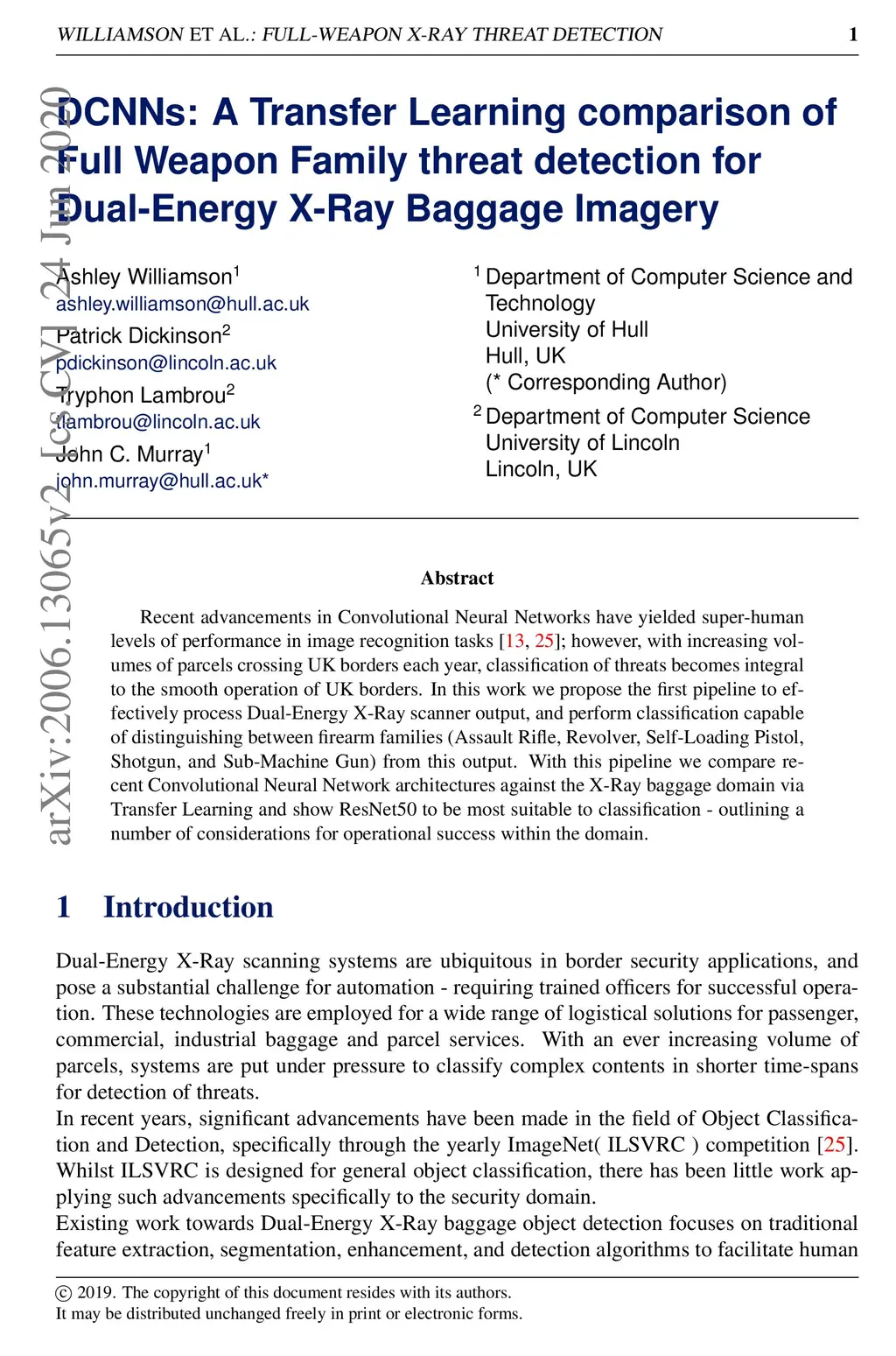 Recent advancements in Convolutional Neural Networks have yielded super-human levels of performance in image recognition tasks [13, 25]; however, with increasing volumes of parcels crossing UK borders each year, classification of threats becomes integral to the smooth operation of UK borders. In this work we propose the first pipeline to effectively process Dual-Energy X-Ray scanner output, and perform classification capable of distinguishing between firearm families (Assault Rifle, Revolver, Self-Loading Pistol,Shotgun, and Sub-Machine Gun) from this output. With this pipeline we compare re-cent Convolutional Neural Network architectures against the X-Ray baggage domain via Transfer Learning and show ResNet50 to be most suitable to classification - outlining a number of considerations for operational success within the domain.