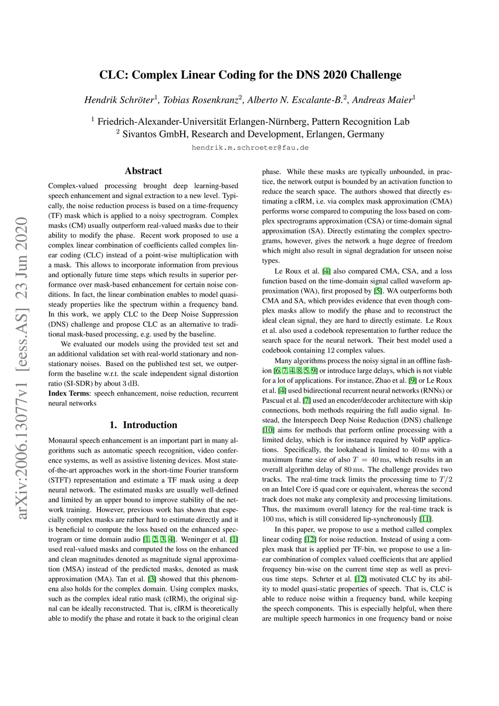 CLC: Complex Linear Coding for the DNS 2020 Challenge
