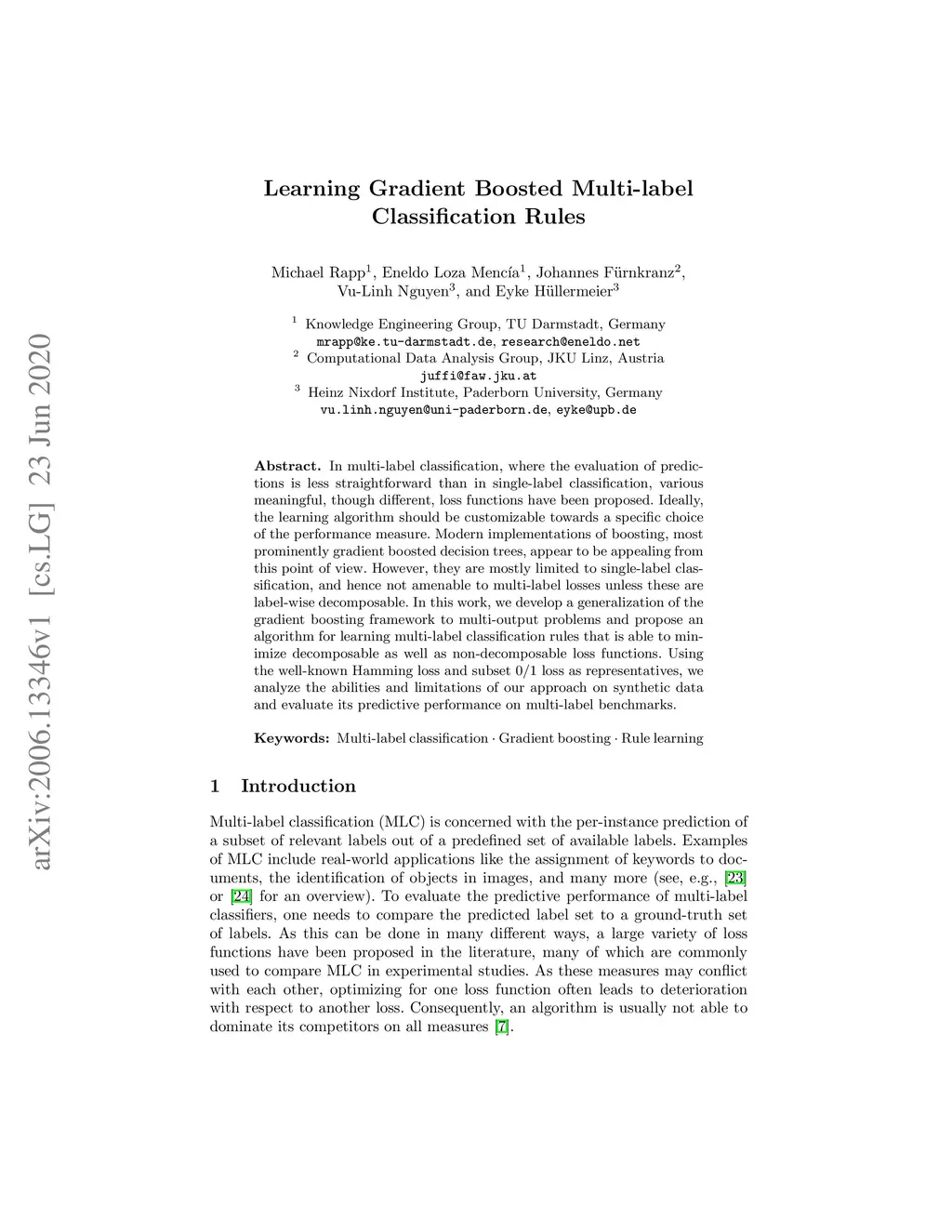In multi-label classification, where the evaluation of predictions is less straightforward than in single-label classification, various meaningful, though different, loss functions have been proposed. Ideally, the learning algorithm should be customizable towards a specific choice of the performance measure. Modern implementations of boosting, most prominently gradient boosted decision trees, appear to be appealing from this point of view. However, they are mostly limited to single-label classification, and hence not amenable to multi-label losses unless these are label-wise decomposable. In this work, we develop a generalization of the gradient boosting framework to multi-output problems and propose an algorithm for learning multi-label classification rules that is able to minimize decomposable as well as non-decomposable loss functions. Using the well-known Hamming loss and subset 0/1 loss as representatives, we analyze the abilities and limitations of our approach on synthetic data and evaluate its predictive performance on multi-label benchmarks.