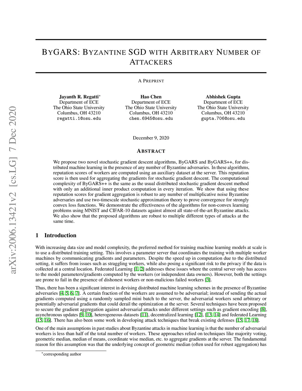 ByGARS: Byzantine SGD with Arbitrary Number of Attackers