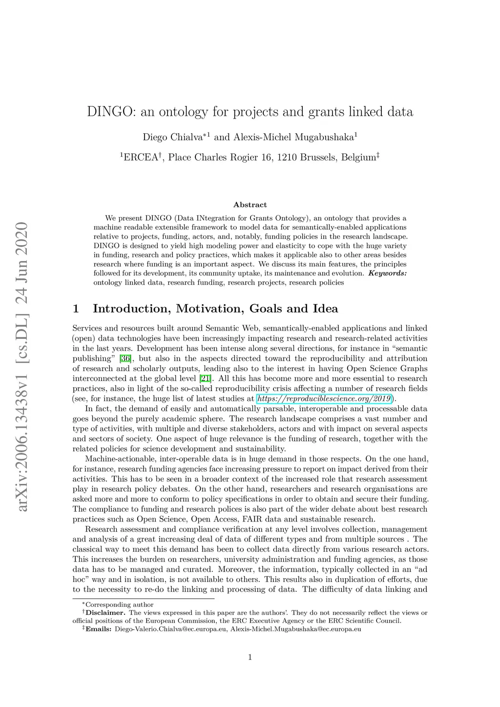 We present DINGO (Data INtegration for Grants Ontology), an ontology that provides a machine readable extensible framework to model data for semantically-enabled applications relative to projects, funding, actors, and, notably, funding policies in the research landscape. DINGO is designed to yield high modeling power and elasticity to cope with the huge variety in funding, research and policy practices, which makes it applicable also to other areas besides research where funding is an important aspect. We discuss its main features, the principles followed for its development, its community uptake, its maintenance and evolution.