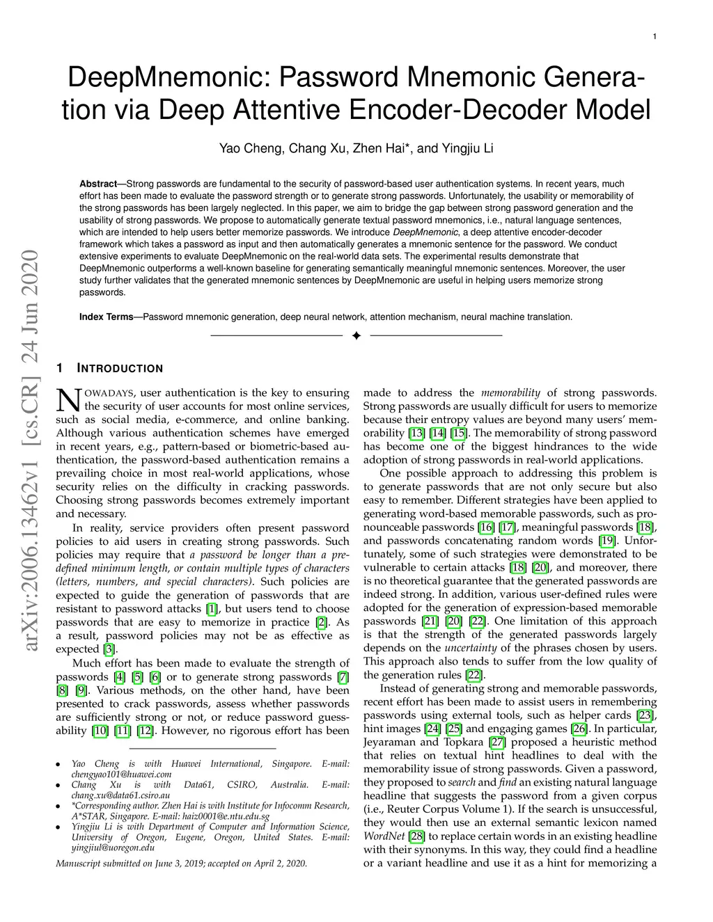 DeepMnemonic: Password Mnemonic Generation via Deep Attentive