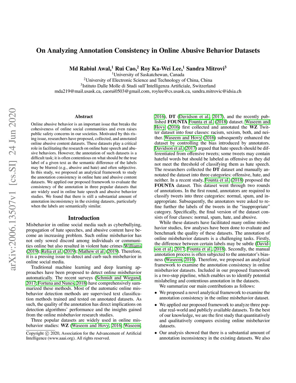 On Analyzing Annotation Consistency in Online Abusive Behavior Datasets